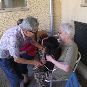 Les chiens visiteurs en EHPAD proposent des activités d’obé rythmée, séances de caresses pour les toutous, toilettages pour les plus envieux et sourires sur tous les visages !