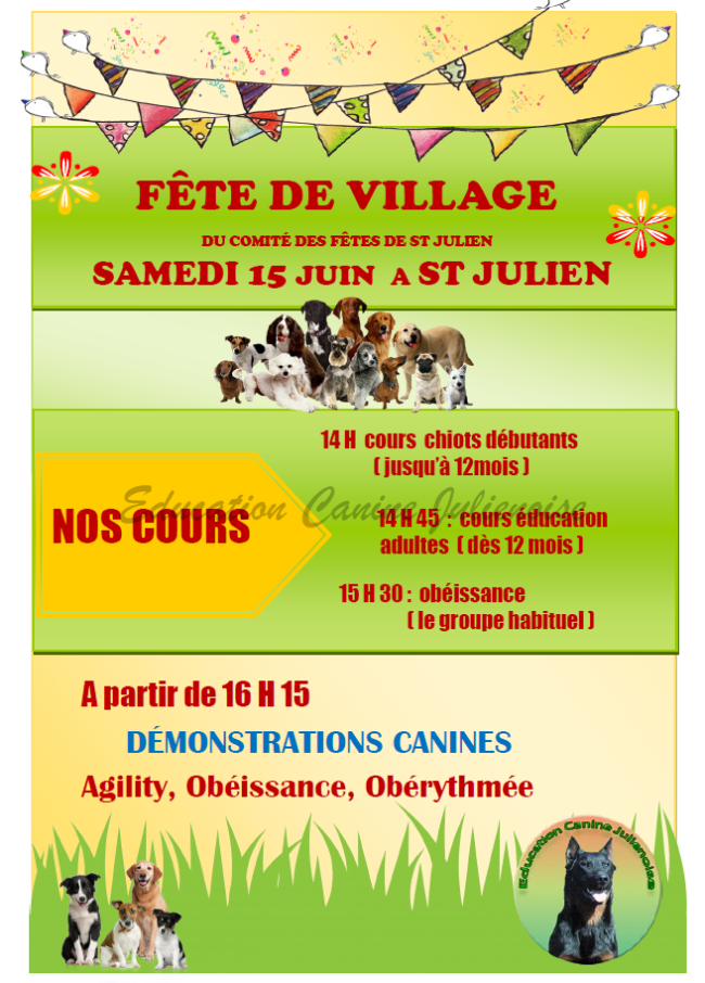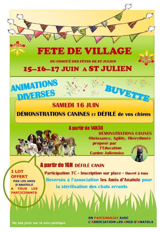 Le 7 avril 2018, l’Education Canine Julienoise organise, en partenariat avec l’association « Les Amis d’Anatole », un défilé canin à la salle des fêtes du Pouyalet.